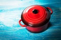 Red Pot Blue Wooden ...