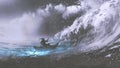 Man Boat Stormy Sea...